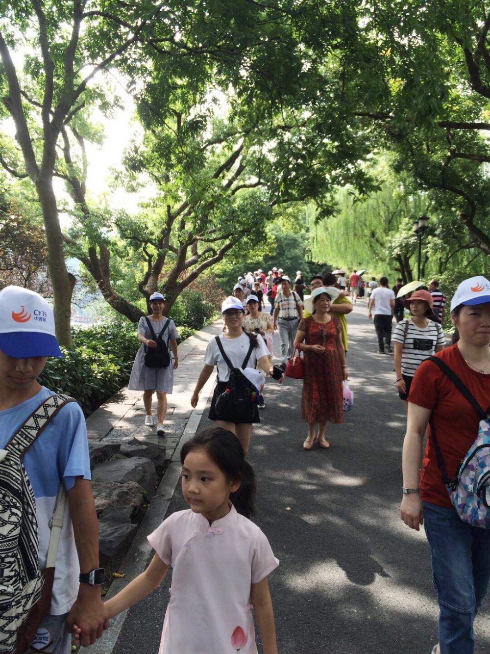 一下車,大家漫步來到了西湖邊,走在蘇堤上,紛紛感慨:西湖不愧是人間天堂??!整個一座湖就像一面大鏡子,倒映著湖邊的美景,照出了大家歡樂的心聲。湖堤兩岸長滿了柳樹,柳樹依舊像春天那樣充滿著蓬勃的生命力,枝條長得已經垂到了湖面,宛如一個美麗的少女正在清洗她那長長的黑發,微風乍起,柳枝擺動,仿佛是風在彈奏悠揚的豎琴,也仿佛在歡迎我們恒森一家人的到來。在這如此美的景色下,有的員工拿出手機拍照留念,有的員工結伴倚在湖邊的長凳上,相互聊天拉家常。