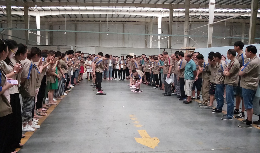 隨著一聲“比賽開始”的口令,大家熱情高漲,隊員們齊心協力,奮力拼搏,有些隊剛開始有點緊張,所走路線成彎曲狀,后來,在大家從旁提醒,順利到達終點。有些隊吸取經驗,通過簡單的交流和溝通戰略技巧,比較順利。相比而言,后面的組明顯比前面的組速度快。在整個比賽過程中,里料車間團隊協作的能力和靈活的戰術配合比較好,本著“友誼第一、比賽第二”的精神,經過激烈角逐,里料車間以2分25秒完成了60米“搭橋過河”獲比賽第一名,包裝車間獲得第二名,技術部獲得第三名。