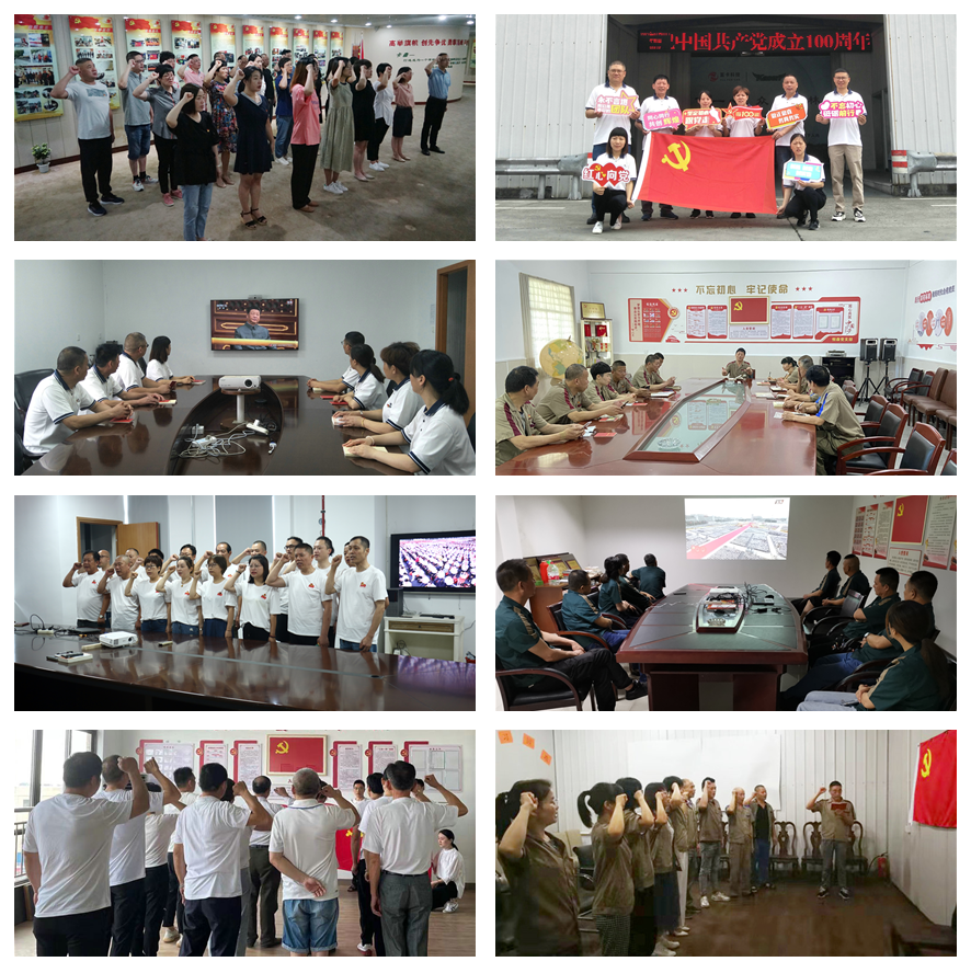 7月1日,是偉大的中國共產(chǎn)黨成立100周年,舉國上下普天同慶,卡森集團(tuán)也不例外。當(dāng)天一大早,公司黨委全體黨員滿懷激情,在各支部書記的帶領(lǐng)下,開展重溫誓詞、觀看《慶祝中國共產(chǎn)黨成立100周年大會(huì)》直播、高唱《中華人民共和國國歌》、《沒有共產(chǎn)黨就沒有新中國》等,慶祝黨的100周歲生日。