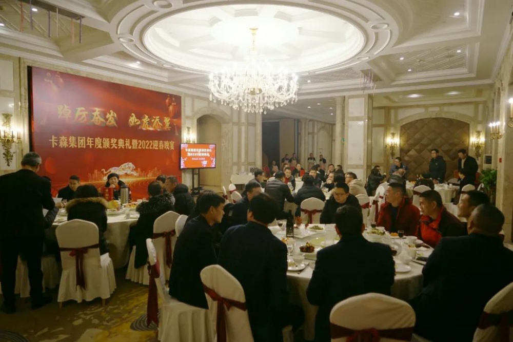 1月20日,卡森集團年度頒獎典禮暨2022迎春晚宴在王庭世家舉行,因疫情原因及防控等要求,僅集團部門經理以上及子公司老總等50多人參加。回顧總結2021,筑夢展望2022。
