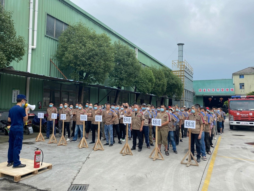 下午2點,廠區南半部分的各個車間警鈴同時響起,在崗的員工紛紛停下手中的活,有組織地進行疏散,在指定區域進行集中培訓。活動邀請了斜橋消防中隊的專職消防員進行消防知識的專業傳授和滅火器等使用的現場指導。隨后北半部分廠區的一線員工也進行了相同的培訓。培訓人數近350人。