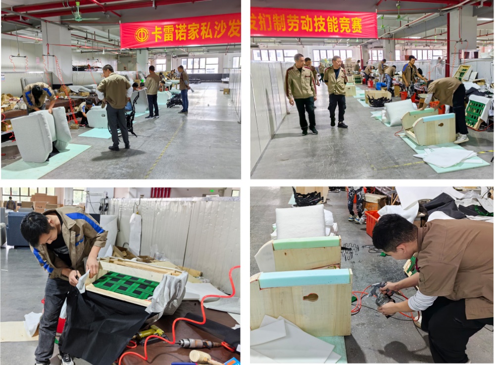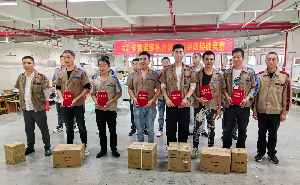 為貫徹黨的二十大精神,在全社會(huì)弘揚(yáng)勞動(dòng)精神、奮斗精神、創(chuàng)造精神,進(jìn)一步提高員工勞動(dòng)技能,激發(fā)員工愛(ài)崗敬業(yè)熱情,10月28日下午,海寧卡雷諾家私有限公司組織開(kāi)展了沙發(fā)捫制勞動(dòng)技能競(jìng)賽。