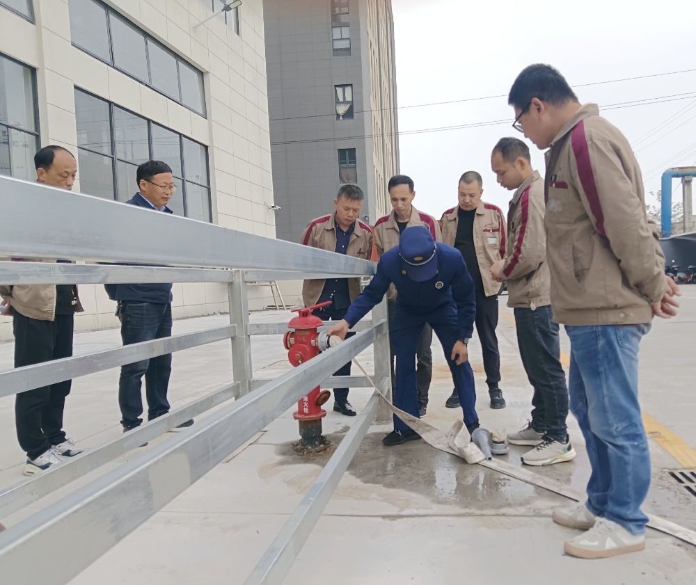 一聲令下,全體員工迅速從防火通道口撤離,集中小跑至空曠安全地帶。清點人數,集結完畢后,由斜橋專職消防員對消防安全“四個能力”知識、疏散逃生中注意的要點、如何報火警、火災預防、火場自救及逃生方法等常識進行了講解,以及如何規避安全事故及正確使用滅火器和出水帶也一一做了講解。公司組織10名員工代表對干粉滅火器進行滅火演練,及水帶連接消火栓出水演練。