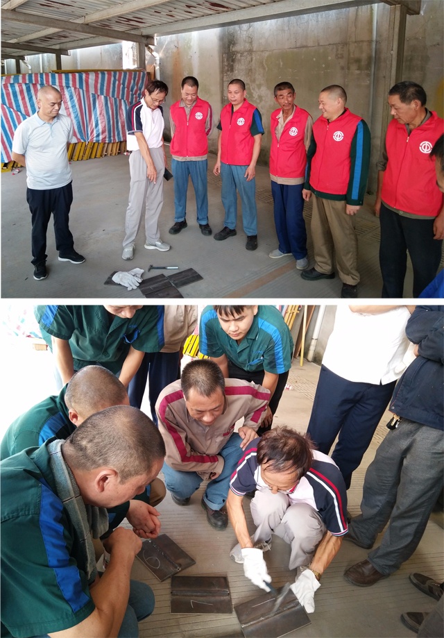 隨著比賽的正式開始,現場頓時弧光閃爍,焊花飛濺,叮當聲響起。只見參賽選手頭戴面罩,手持焊槍,個個一絲不茍、專心致志。在焊接過程中,他們調整好電流,找準點位,準確焊下去,并不時敲打,認真審視焊接質量,及時調整焊接位置和電焊機強度,其專心認真的態度不亞于打造一項精美的工藝品。而賽后考評老師吳正冰對每一件“作品”編號并進行細心觀察和質量講解,給予認真點評,讓每位選手現場得到了老師的點撥和啟發,心服口服!